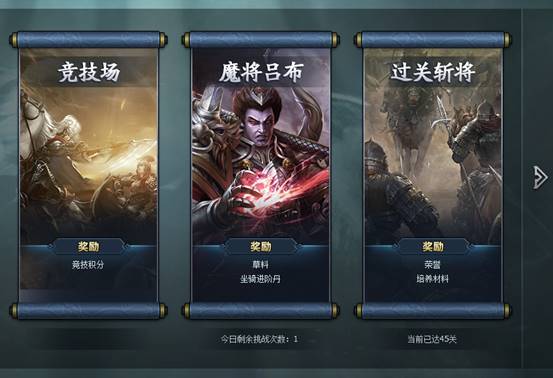 1.在过关斩将玩法中,玩家可以一路挑战守关大将,挑战成功后即可获得该关卡的挑战奖励。