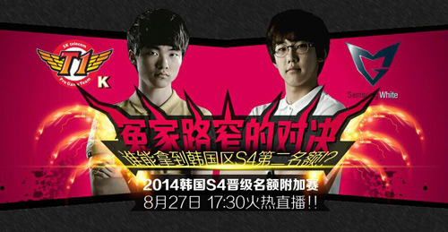 lol英雄联盟最新战报:本周三(8月27日)北京时间17点30分,2014韩国S4晋级名额附加赛,对阵双方分别是积分并列第二的SKT T1K和SAMSUNG White。两个老对手再次相遇,即将引发火星撞地球的碰撞。一起来看比赛详情······