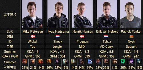 2014 欧洲LCS 夏季常规赛 ─ 第二名,19 胜 9 败