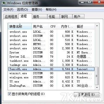 4M的宽带网速会被限制在120KB/S左右,想要提高速度需要打开任务管理器,找到TenioDL.exe这个程序,就是下面我点击到的这个了。
