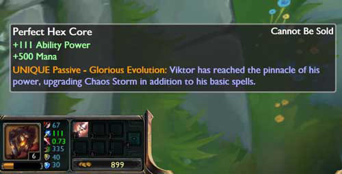 “维克托开始能获得原型海克斯核心,他可以升级三次,每次需花费1000金币。每次升级后会获得25法术强度,150法力值还有每等级提升1点法术强度,升级到完美海克斯核心时获得75法术强度,每等级加6法术强度,还有500法力值。