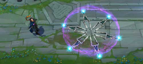 维克托可以在7秒内继续引导他们奇点,对附近的敌人每秒造成30/60/90(+0.2AP)的魔法伤害。奇点离维克托越远,移动速度越慢。