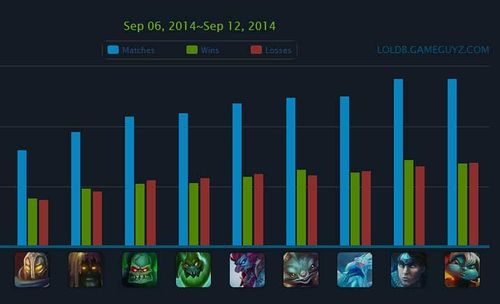 这里也忽略暂未登场的阿兹尔。螃蟹仍旧排在榜首,而蛇女目前胜率只有42.2%,排在第二,重做的效果暂未表现出来,老鼠的胜率也继续下降,排至第三。妖姬、卡萨丁、蜘蛛等英雄的胜率也没有好转。
