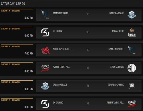 A组和B组的比赛将于18号到21号在台湾举行,C组和D组的比赛将于25号到28号在新加坡举行。