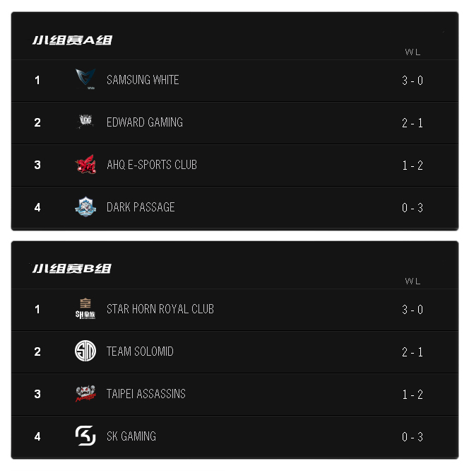 北京时间9月19日23点20分,台北站小组赛第一轮最后一场比赛结束,两个小组的座次也排定。