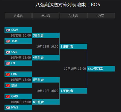 都是3队进入8强,不过两支中国队伍要提前在八强赛中相遇,EDG小组赛里表现出的状态让人堪忧,皇族能否再次在内战中获胜?上半区里,TSM和C9将要面对韩国双雄,虽然韩国人被一直看好,但北美队伍并非没有爆冷的可能。