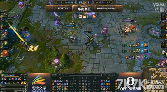 英雄联盟LOL2014职业联赛S4赛季全球总决赛正在火爆举行,借着OMG3:0大胜njws的澎湃激情,《天乐英雄高校精英赛》(LOL)华南赛区也上演了精彩对决,各种空血逃生,极限反杀的精彩瞬间诞生。其中“厦门理工学院RM”战队让我们眼前一亮,尤其是队中的打野更是各路支援各路开花。在一场对阵“赣南师范学院科技学院ADB”的战斗中打的成熟稳健颇有强队风范。