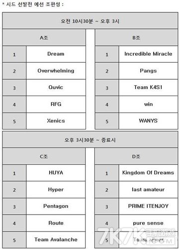大会将20支队伍分为4组,按照小组淘汰赛制进行,而每个小组的第一名将会于11月21日~22日两天在釜山的BEXCO中举行种子选拔赛决赛。比赛将按照3局2胜制度进行,其中前两局为征兆模式,而第三局将变更为盲选模式。
