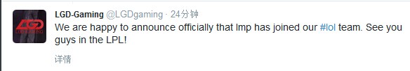 以上为LGD的官方推特,内容为:我们非常开心地在这里通知大家,imp已经加入了我们LGD的LOL战队之中,我们将在LPL的赛场再会!