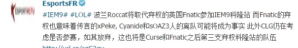 昨日,FNC战队在推特上宣布将退出IEM科隆战的比赛。