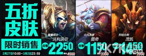 五折皮肤:雷霆领主 沃利贝尔、北风冻原 图奇、烈焰古树 茂凯