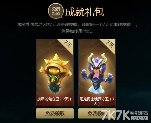 每个玩家英雄成就达到五级即可领取两款限定7天守卫。