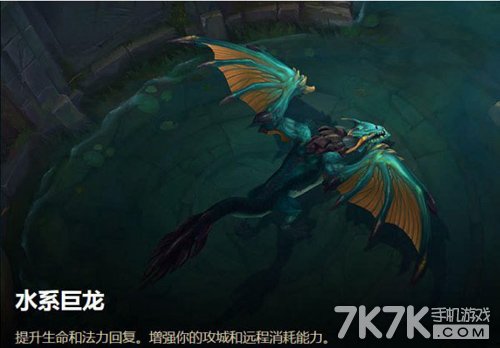 远程攻击,缓速目标。击杀后,给予全队一层海洋巨龙印记,这是一个永久增加生命回复和法力回复的buff。