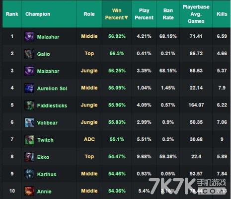 美服胜率榜上,改动后的蚂蚱胜率暴涨,并且在打野的位置上也表现出色,安妮胜率的提升收益于自身的改动以及新装备的出现,而龙王依旧保持不错的胜率,在赛场上大热的艾克老鼠也成为了强势之选。