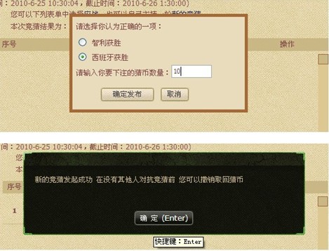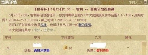 7 、如您猜中了比赛结果,则将获得对方的猜币,如您猜错了结果则失去所有下注的猜币。