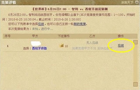 6 、如在您之前已经有玩家发布了主持了一轮竞猜,您可以选择“应战”