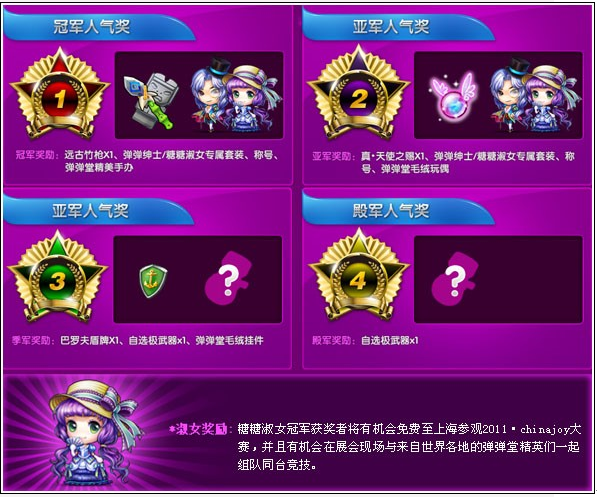 随着远征的召唤开启,弹弹王国出现了越来越多的绅士和淑女。因此,在这个火热的夏天,弹弹国王也举行了一个弹弹绅士和糖糖淑女评选大赛,让弹友们选出自己最爱的绅士和淑女。当然,这些绅士和淑女们将有机会获得弹弹王国为他们准备的丰厚奖励。