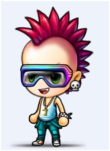 看,Parkour少年来了!血红的鸡冠头,邪恶的骷髅耳环,紧身的背心牛仔裤,配上露出虎牙的酷闪笑容,再用七彩眼镜遮住眼镜,尽显神秘邪魅的酷炫风采。街头跑酷我最酷,这就是我们的口号!
