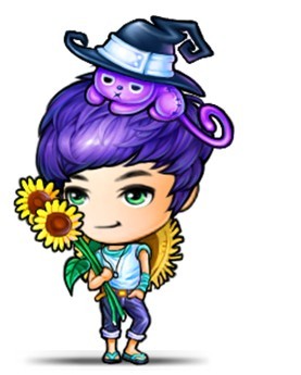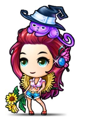同样的向日葵之恋,属于女孩子的风格与男孩就完全不同。热情高贵的红色秀发上,别上一只紫红蝴蝶,代表魔女的魔法猫趴在头顶,然后用不露声色的眼神注视着你的仰慕者们……你就是那尊贵的魔法公主!