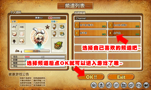 2)、第一次登录游戏需要加载,加载速度由个人网络环境决定。加载完后大家可以选择任意一个频道进入,游戏人物在各频道都是通用的哦!