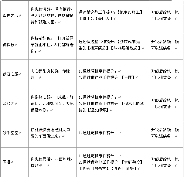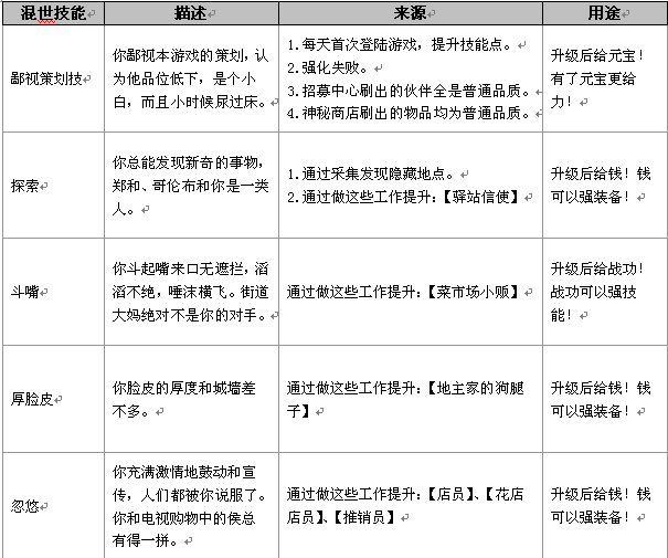 混世技能将游戏营造出“混”的感觉,它与游戏的各个系统息息相关,你的各种行为都可以使混世技能成长起来。