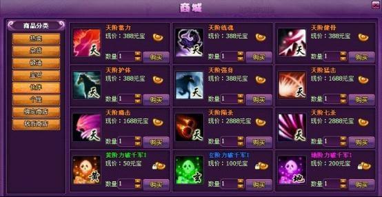 伙伴技主要来源于副本怪和BOSS,会掉落不同级别的技能书,当然商城出售最好技能之天阶技能书顶级。技能书按低级往高级打,高级覆盖低级是100%成功的,天赋技能有三种按回血;加攻击;和晕三种分,单独PK晕人不错,刷副本加血不错,游戏中玄级技能通用适用于广大玩家,爆出几率也很高,想要做强者就从商城的顶级天赋入手吧。