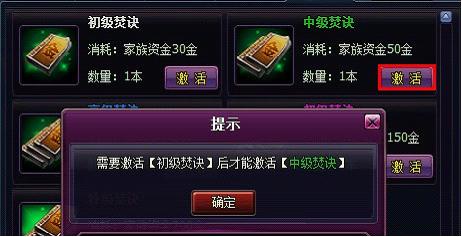 注:目前五种焚诀书不可越级激活,需要按照顺序依次激活(初级、中级、高级、超级、特级),否则系统会给出弹窗提示。