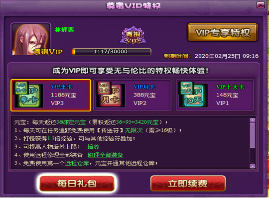 3、累计VIP时间超过90天,即成为VIP3