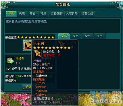 锻造好,发现自己的装备附加属性一般般拿,附加属性俺也不知道那一种好,就随便洗炼了一次次结果如下: