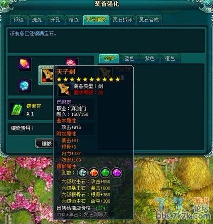装备打完孔,当然不能让它有太多的浪费,得给它填满,发现装备石头后不是一般的变态,真的挺不错的,看看效果