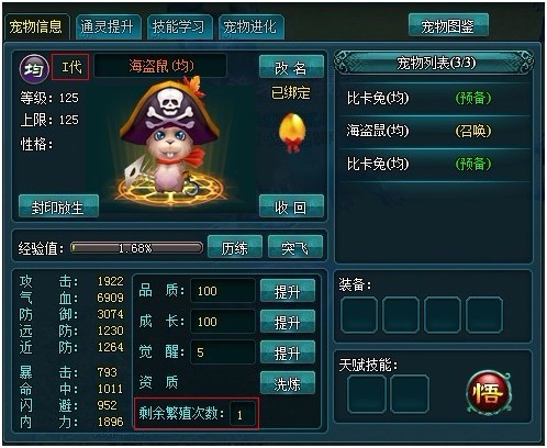 一代宠物110级的时候,有一次繁殖机会