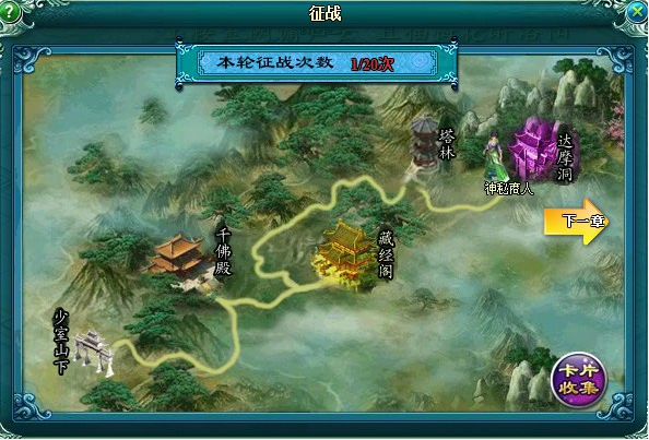 在游戏中,游戏新玩法让你玩不尽,各种玩法交替,可以让人感到无穷的乐趣,今天在这里介绍下游戏中让人期待的征战系统。点击游戏界面的征战按钮进入征战系统,打开征战系统,可以看到可以进行征战的地图。