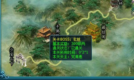 将鼠标移到征战的地点,会显示出当前的征战的BOSS名称、基本奖励(BOSS掉落)、通关状态、所用时间和本关关主(用时最短的玩家为该关关主)。