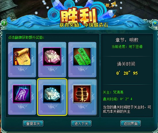 征战中还会显示玩家通关所用时间,赶快提升实力,刷新最快记录吧