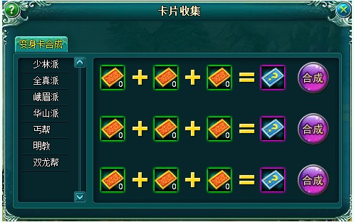征战BOSS会掉落卡片,玩家可以在卡片收集中,将卡片合成为变身卡,使用变身卡能获得大量属性加成,打BOSS、PK必备道具