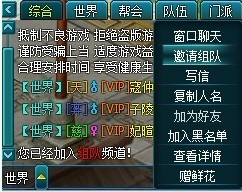 方式2:在聊天频道点击发言玩家的名字—“邀请组队”: