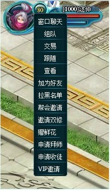 方式3:在游戏里左键点击玩家,选中玩家头像点击打开下拉菜单,点选“组队”选项的列表: