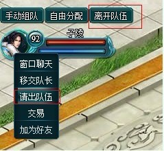 退出队伍:点击角色头像栏下的“离开队伍”按钮,即可离开,如果是队长可以点击队友血条,会弹出相应的下拉菜单。