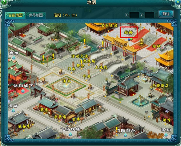 点击游戏中右下角的缘字可以进入情缘界面,里面有婚姻结拜技能。