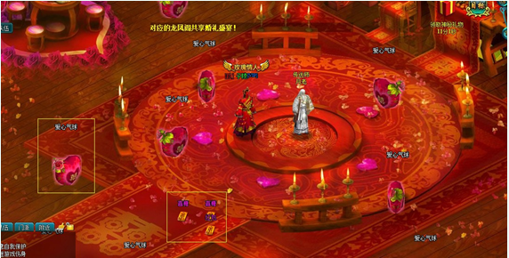 热闹型:开启后获得10张请柬,每隔一定时间获得中量经验,场景中每隔一定时间刷新出较多的气球怪物,击杀后可掉落红包和喜糖 ;