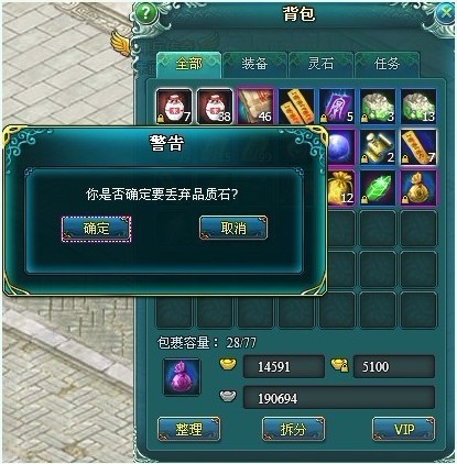 如果有物品无法卖出和交易,又不想放在背包里占用空间,可以选择丢弃物品。拖动要丢弃物品到背包外面释放鼠标左键,会弹出警告提示栏,选择确认,物品就会被销毁。