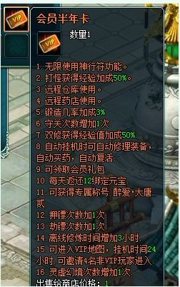 15.可进入VIP地图,挂机时间24小时,可邀请4名非VIP玩家进入