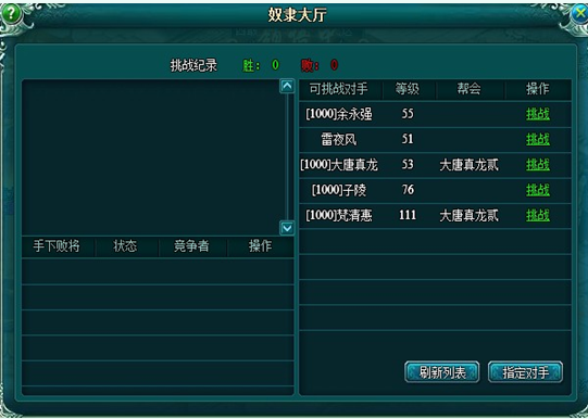 玩家可以在奴隶大厅查看挑战记录,发起挑战