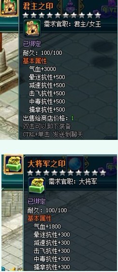不同的阵营官职拥有不同的官印,官印随系统邮件发放,官印不能强化与喂养宝物。