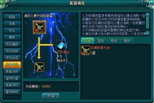 2、完美的武器可以通过消耗一定数量的神石升级为相应等级的绝世神兵