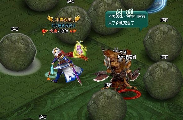 通过喷火走廊,玩家进入滚石区域,击杀完小怪,BOSS才会刷新,打小怪的时候,滚石区将会刷新滚石,玩家需要躲避,被滚石砸中将会减少血量