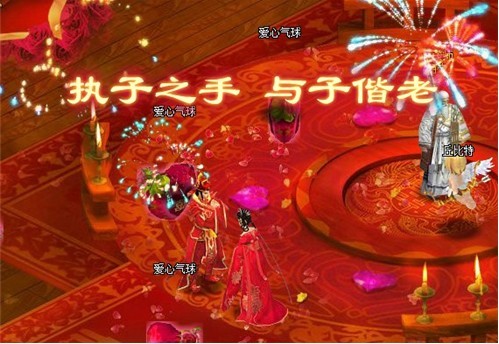 当玩家邀请完好友后,新人可以在龙凤阁的【月老】处开启结婚仪式