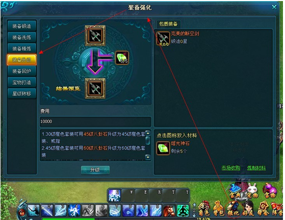 只有完美的武器才能通过【强化】中的【装备升级】功能升级为绝世武器,消耗的道具为击杀野外BOSS所掉落的神石: