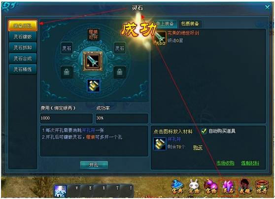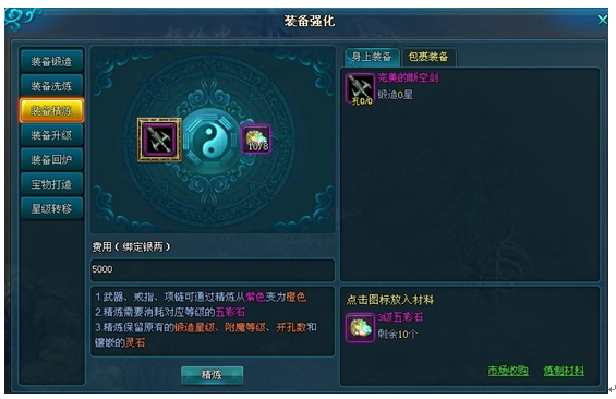 镶嵌属性:可通过【灵石】的【开孔】以及【镶嵌】提升