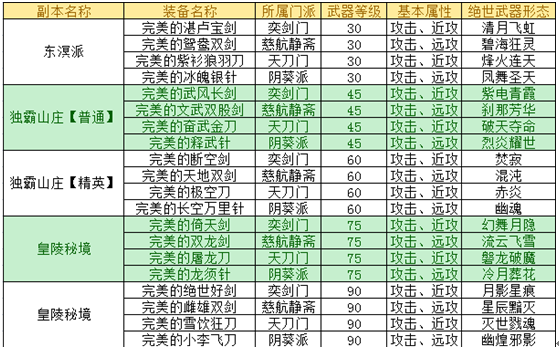 一般来说,在前期装备获得副本是优先进行的副本,武器副本中击杀怪物均有一定的几率掉落武器;怪物掉落武器为绿色以及蓝色非完美武器,击杀副本最终BOSS有一定的几率获得该副本产出的完美武器;